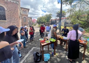 Per la prima volta ho condiviso il mio spazio personale con delle persone della provincia di Esmeraldas, Yanny e Cristina, due donne straordinarie che lavorano nel seminario. Con loro mi sono sentita subito a casa: mi accolgono sempre con un abbraccio che scalda anche le giornate più fredde e ventose di Quito, si preoccupano per me come farebbe una nonna, chiedendomi se ho mangiato abbastanza, e mettono anima e cuore nel loro lavoro, affinché ogni ospite si senta il benvenuto. In poco tempo, da loro ho imparato tanto. Ho imparato ad aprire le conchas (più difficile di quanto sembri!), a preparare il mio primo sancocho, una zuppa tipica del Sudamerica con platano verde, choclo, carne e yuca, ed a preparare le empanadas de verde (per ora solo da spettatrice, ma prima o poi ci proverò anch’io). Ma soprattutto, ho imparato ascoltando le loro storie: mi hanno raccontato come si vive nella loro terra, come la situazione sia cambiata negli ultimi anni, dopo la pandemia e con l’aumento della presenza di bande criminali in Ecuador, e come tutto questo influenzi il futuro dei loro giovani.