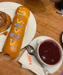 Ho anche vissuto per la prima volta il periodo della colada morada e delle guaguas de pan, una tradizione tipica tra ottobre e novembre legata alla commemorazione dei defunti. Questa usanza unisce elementi indigeni e cristiani: le popolazioni originarie preparavano bevande a base di mais e frutti rossi come offerta agli spiriti dei loro antenati, e con l’arrivo del cristianesimo la pratica si è fusa con la celebrazione cattolica del Giorno dei Morti. Oggi la colada morada si accompagna alle guaguas de pan, piccoli pani dolci a forma di bambino che simboleggiano la vita. Che dire… buonissima!!!